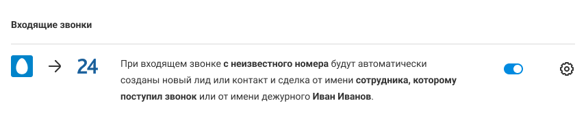 Чтобы при исходящих также создавались сущности, включите их создание в разделе «Исходящие звонки».