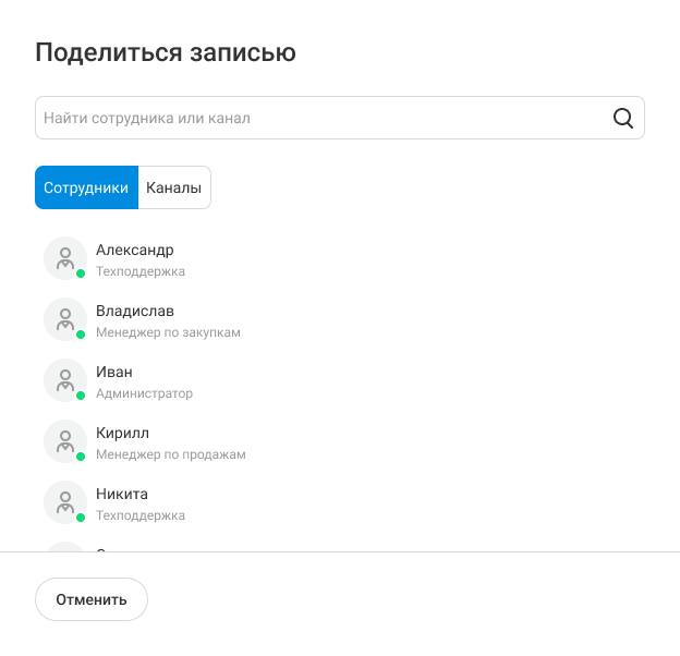 Чтобы поделиться записью звонка в чате, в проигрывателе нажмите на иконку в правом нижнем углу.