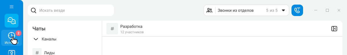 На иконке истории в боковом меню отображается общее число пропущенных звонков, как личных, так и по вашему отделу.
