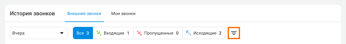 Нажмите на кнопку «Фильтры», чтобы открыть панель фильтров. С ее помощью можно отфильтровать звонки не только по клиентам и сотрудникам, но и: