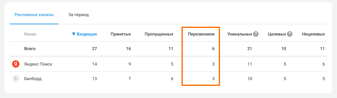 5. Отслеживайте, по скольким пропущенным звонкам перезвонили