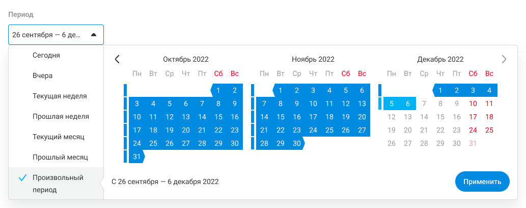 6. Соберите отчет за любой интересующий вас период в пределах года