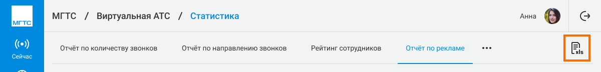 Вы можете экспортировать отчет по каждой рекламной кампании в формате xlsx. Экспорт в xlsx позволит провести более глубокий сравнительный анализ данных, используя собственные инструменты для аналитики. Комбинируйте отчет по рекламе с другими данными. Например, добавив столбец с расходами на рекламу, вы можете посчитать стоимость уникального звонка на рекламный номер. Чтобы скачать отчет в формате xlsx, кликните на иконку с подписью xls в правом верхнем углу экрана.