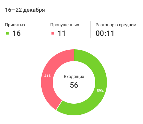Процент пропущенных среди всех вызовов поможет вам понять, у какого отдела или сотрудника проблем с обработкой звонков. Особенно важны звонки, которые приходят с рекламы. Ведь неотвеченные заявки — это трата денег впустую. Если потенциальный клиент не дождался ответа вашего менеджера, возможно, он уже звонит в другую компанию.