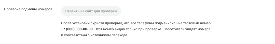 Также перед запуском кампании вы можете проверить подмену номеров на сайте вручную.Для этого перейдите в настройки нужной рекламной кампании и нажмите на кнопку «Перейти на сайт для проверки», расположенную под блоком со скриптом. Вы перейдете на сайт, указанный в рекламной кампании.